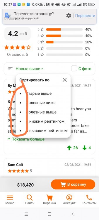 скрин http://i.abt.team/trs/2024-03-25_104645.jpg Пользователи предлагают, чтобы значения сортировок был идентичными во всех местах. Например, на стр категории значения сортировок отображаются без списка. Ожидаемый результат: Убрать эффект списка из окна сортировки отзывов.