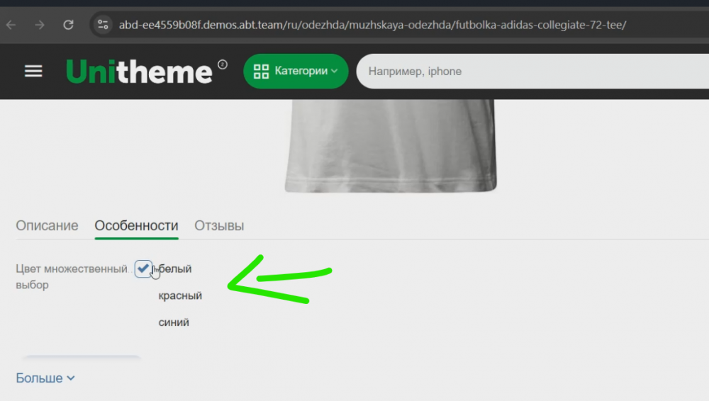 Приветствую. Баг нашли - есть не все варианты характеристик для выбора. И при выборе Белый фильтрует по Синий. Повторено на демке. Может про него конечно и писали, но я не помню )) Выложите плиз фикс, а то очень уж неприятный баг. Ссылка Скрины