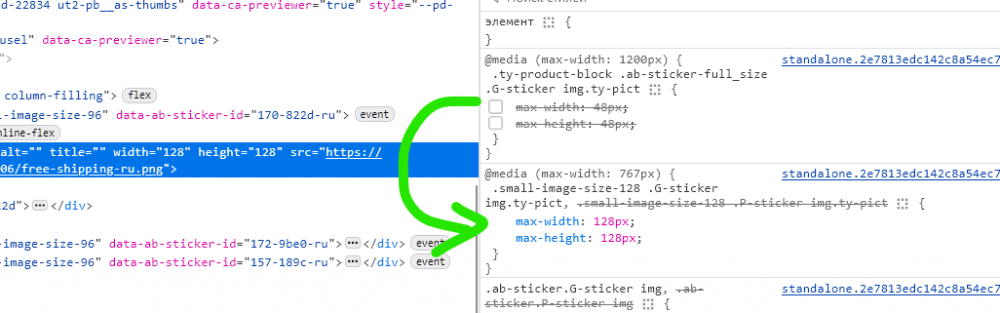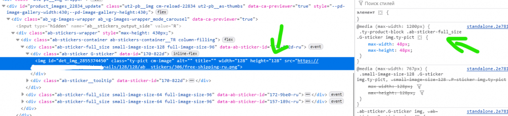 Приветсьвую. Для графических стикеров есть какой то странный стиль, который не дает их сделать больше 48 пикселей. Скрин 1. Если его выключить, то размер становится как в настройках стикера. Скрин 2. Вырежте его из модуля плиз. Скрин 3. /www/design/themes/responsive/css/addons/ab__stickers/styles.less Или в нем есть смысл?
