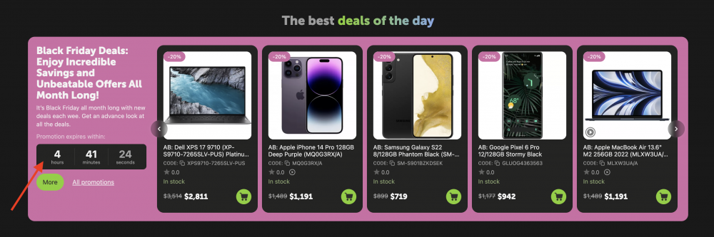 Товары в баннерах должны иметь компактный вид, убрано лишнее. Какая целесообразность вывода этих элементов? Клиент должен переходить на страницу товара для дальнейшего ознакомления с товаром который их заинтересовал в баннере, даже кнопка купить под вопросом, возможно поменяем ее на "Просмотр".
