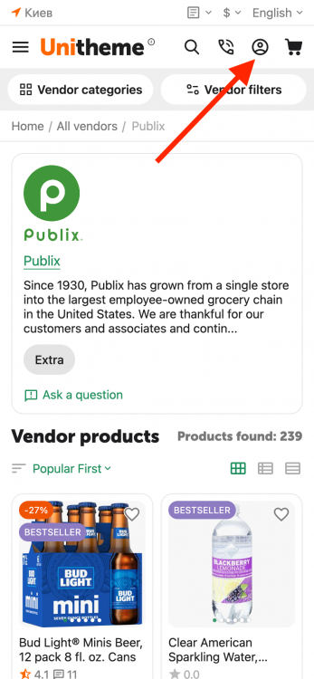 Да, на телефонах с малыми экранами есть проблема, в макете на странице (Vendor store) для блока Account не указано скрытие на мобильных (функционал аккаунта пользователя доступен в Fly-меню), на всех других страницах данный блок на мобильных скрыт. Добавим также доп адаптивность, логотип будет уменьшаться в зависимости от размера экрана и количества иконок в ряду.