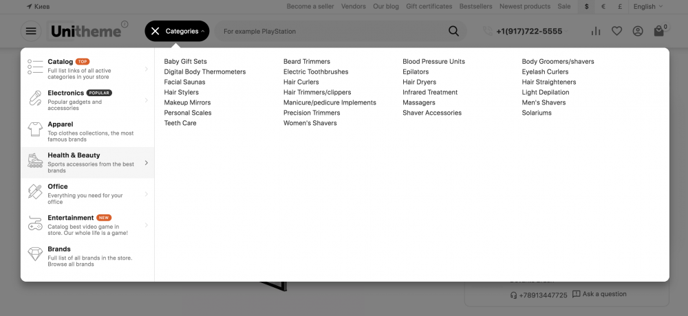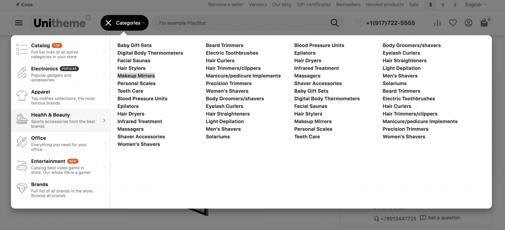 Выписка из документации! Тип блока "AB: Открытие выпадающего по клику списка" во Fly меню Блок отображает кнопку, которая открывает выбранный в настройках блок с оболочкой Выпадающий по клику список или АВ: Выпадающий по клику список (внешнее размещение). Изначально блок был разработан для отображения на витрине дополнительной кнопки, которая открывает блок меню категорий с шаблоном AB: Вертикальный выпадающий список с иконками. Пошаговая инструкция настройки блока с типом AB: Открытие выпадающего по клику списка во Fly-меню: Создайте блок с типом AB: Открытие выпадающего по клику списка на странице Панель администратора → Дизайн → Макеты → Блоки; Перейдите в настройки блока, во вкладку Контент; В поле (Выберите блок), укажите блок меню с шаблоном AB: Вертикальный выпадающий список с иконками (заранее узнайте ID блока меню); Сохраните изменения в блоке с типом AB: Открытие выпадающего по клику списка; Перейдите к настройкам блока Fly меню, вкладка Контент и перейдите на страницу настроек контента Fly-меню; На странице контента Fly-меню добавьте блок AB: Открытие выпадающего по клику списка и разместите данный блок в наиболее приемлемой части Fly-меню; Сохраните изменения Fly-меню. Перед использованием убедитесь, что блок меню с шаблоном AB: Вертикальный выпадающий список с иконками доступен для просмотра на всех устройствах! В ином случае, кнопка, которая открывает меню, будет бесполезна. Рекомендуется использовать макет Light ult9 и выше. В этом демо-макете для блока меню Категории с шаблоном AB: Вертикальный выпадающий список с иконками используется специальная секция, где в поле Пользовательский CSS-класс применяется значение top-search. Данная секция позволяет скрывать отображение блока меню Категории для мобильных устройств, но при этом сохраняя работоспособность кнопки открытия меню.