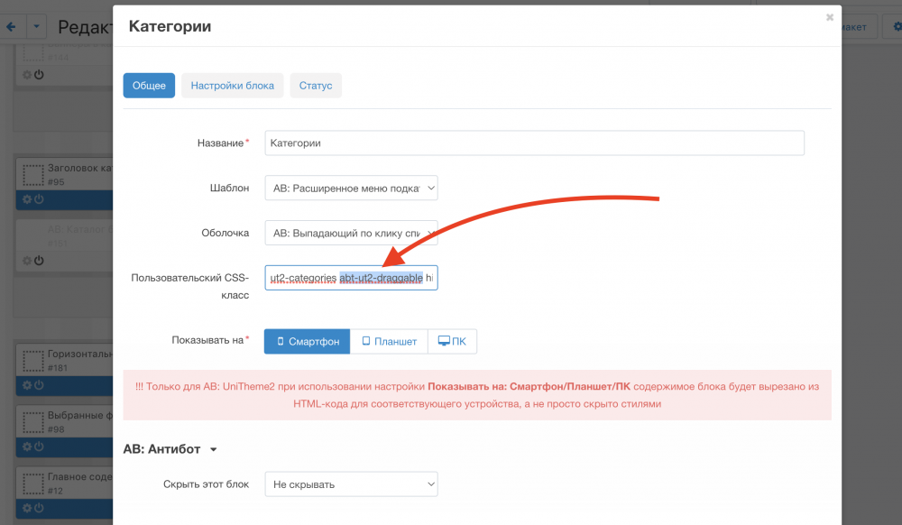 @maksimist Возможно у вас используется устаревший Пользовательский CSS-класс (abt-ut2-draggable), удалите его из поля блока, очистите кеш.