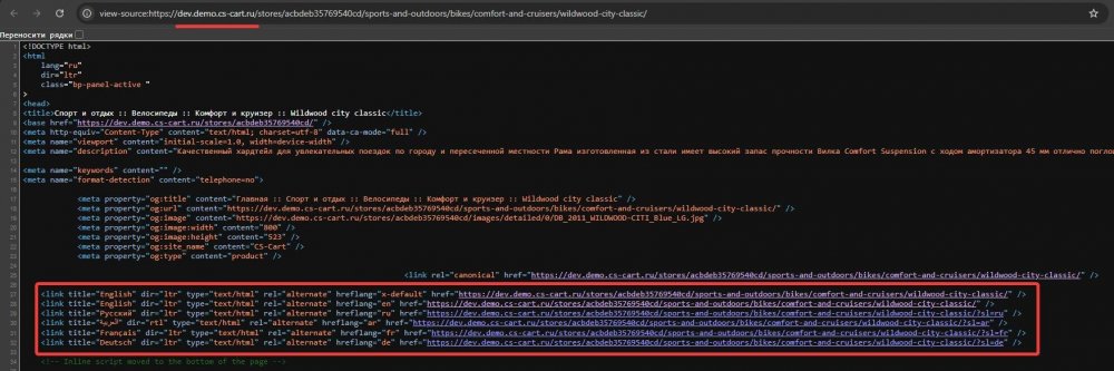 19. Чтобы совсем уж полно раскрыть тему, то это формируется в файле /design/themes/*тема*/templates/addons/seo/hooks/index/meta.post.tpl http://i.abt.team/serhii/2024_10_04_4232493862.jpg Так как нам нужно было добавить туда свой хук, мы перетянули этот файл к себе. Но весь остальной код остался родной. Если раздобудете решение для формирования "кода языка+кода региона", то учтите что нужно поменять в соответствующем файле.