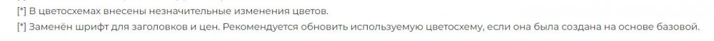 23. @Mad через diff долго и грустно. Лучше так: 1. Веб-сайт -> Темы -> Шаблоны -> abt__unitheme2 -> styles -> data. Открываете .less файл своей текущей цветосхемы, в начале файла смотрите на основе какой она сделана. Например: http://i.abt.team/serhii/2025_09_03_2254863324.jpg 2. Переключаетесь на оригинальную цветосхему, идёте в Редактор тем и клонируете её. http://i.abt.team/serhii/2025_09_03_6750934503.jpg Таким образом получаете свежий клон со всеми последними изменениями. Ну а дальше, при необходимости, уже тюнингуете её по себя (логотипы, цвета, размеры шрифтов etc) и переносите свои CSS (если есть).