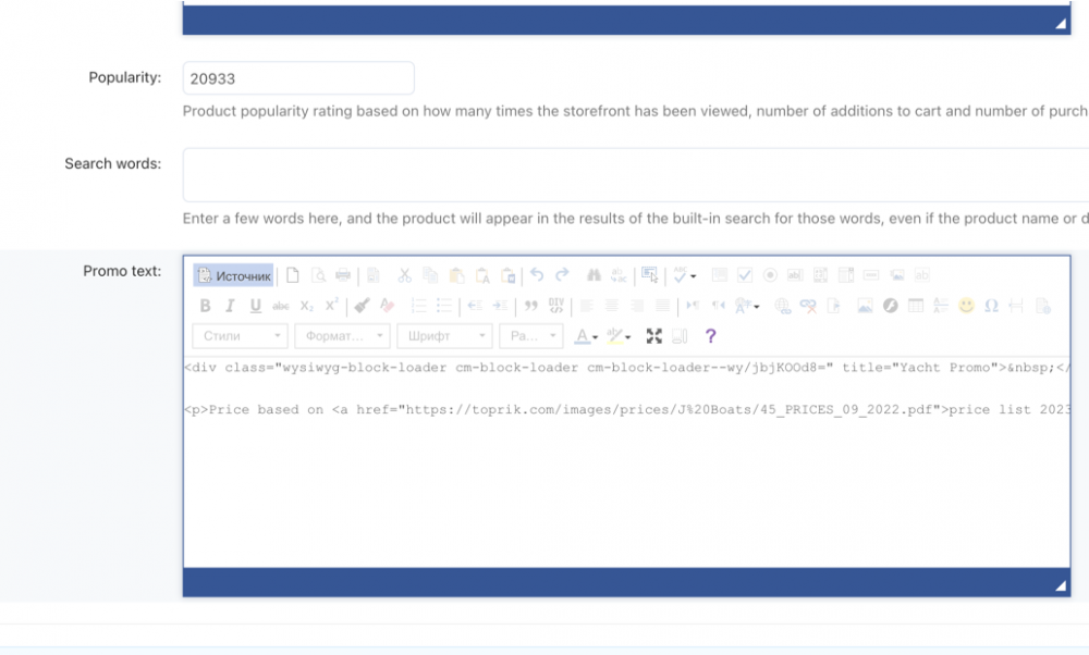 В итоге получается переспам сильнейший, что негативно влияет на SEO, т.к. в него обычно размещаешь конструкция "%%Название_товара%% купить" или что-то подобное с ключевым словом.