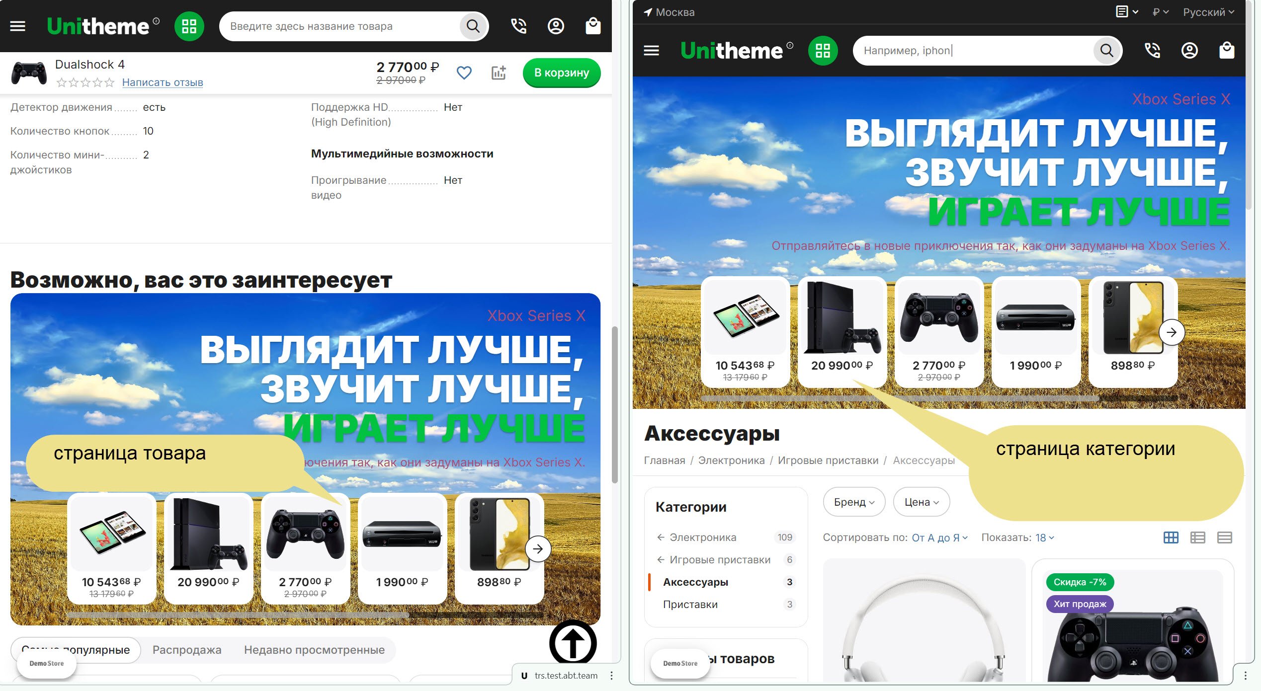 2) Вы написали: "На демо-версии есть баг, который не позволяет вывести баннеры в карточке товара". Я вам показал скриншот со страницы товара, где ошибка не повторилась. Мне нужны условия повторения данной ошибки. Давайте овозможностях Демоса не будем говорить, потому что там должныбыть определённые ограничения.