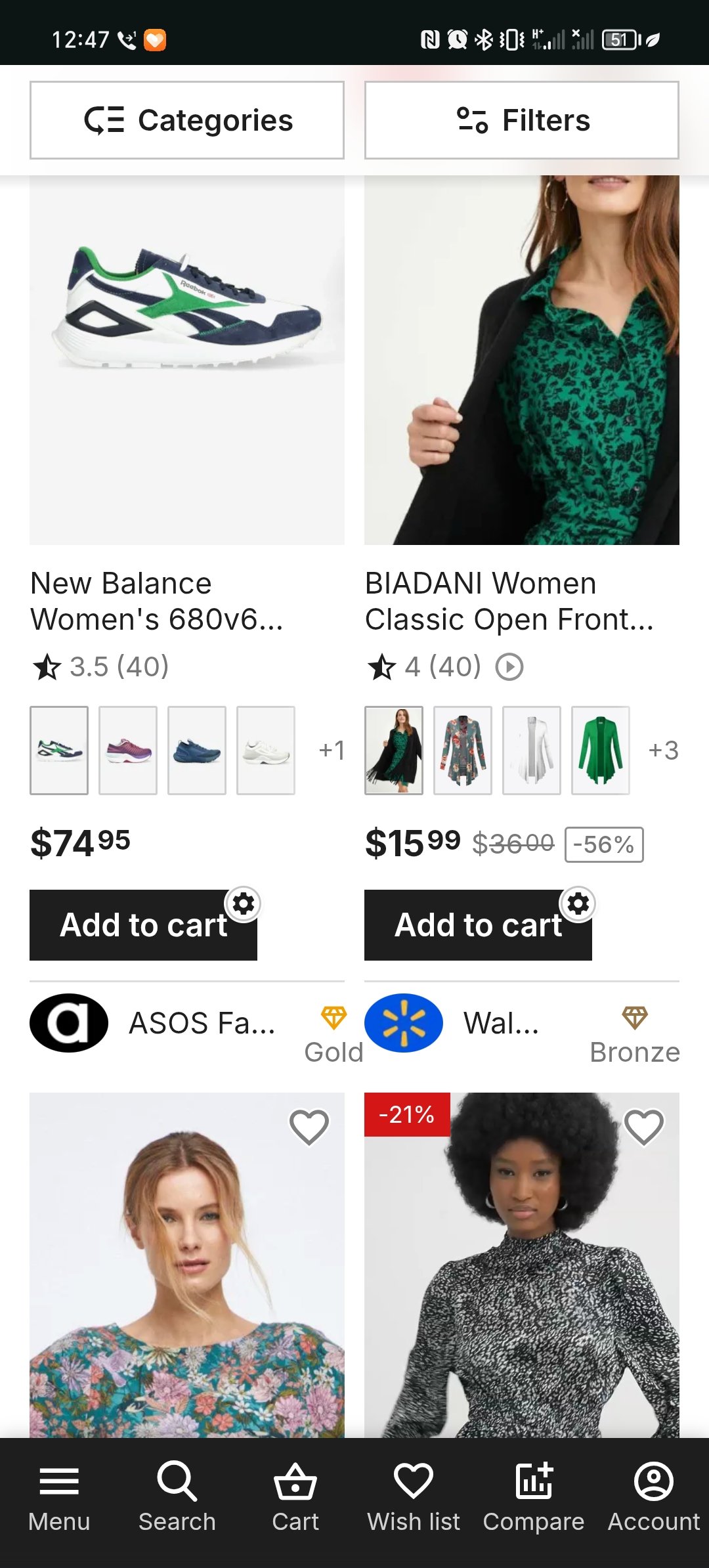 7. В категории Товары Вендора и Акции, в мобайле, стоило бы поставить не только Фильтры (Липкий горизонт), но и категории.