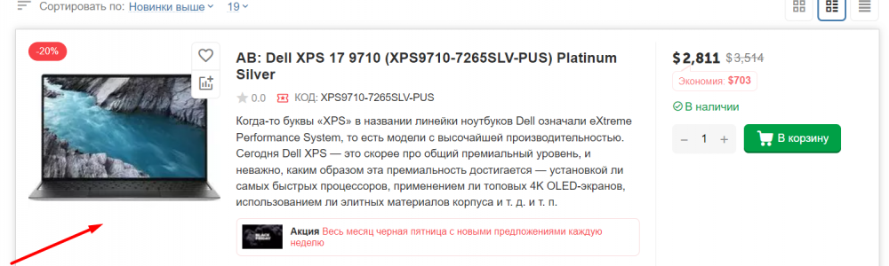 1. Предлагаю сделать предпросмотр миниатюр товаров не только в шаблоне Сетка, но и в списке: