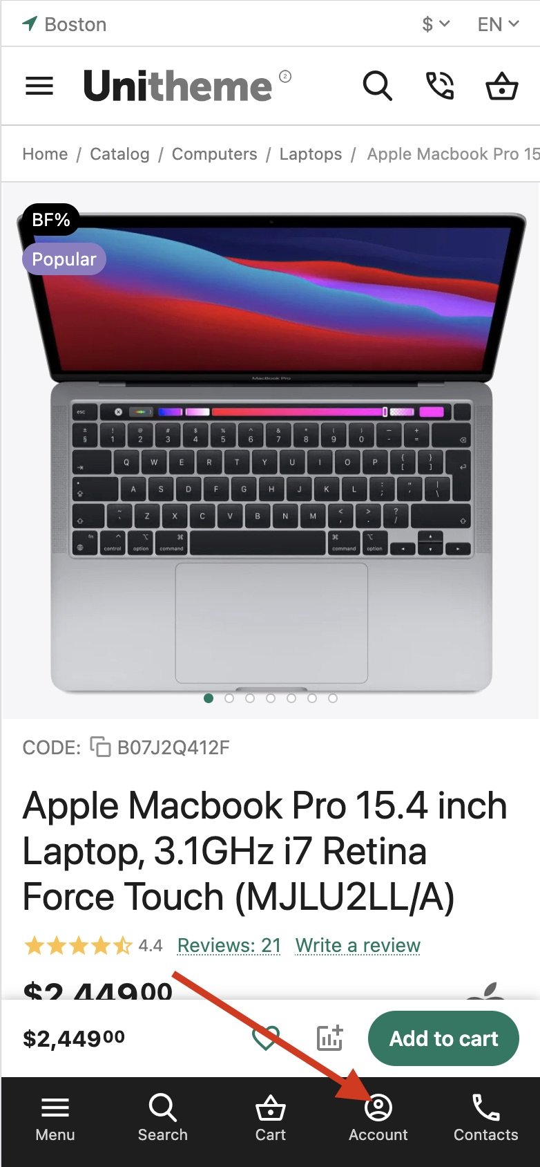 Итак, дизайнер подтвердил, что в макете специально был скрыт Аккаунт для мобильных устройств с малым расширением экрана. Чтобы убрать этот запрет, добавьте Пользовательский CSS-класс: