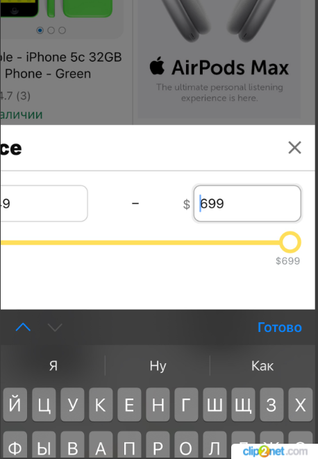 1. Ползунок цены не реагирует, невозможно передвинуть ios, дергается - скроллится содержимое страницы