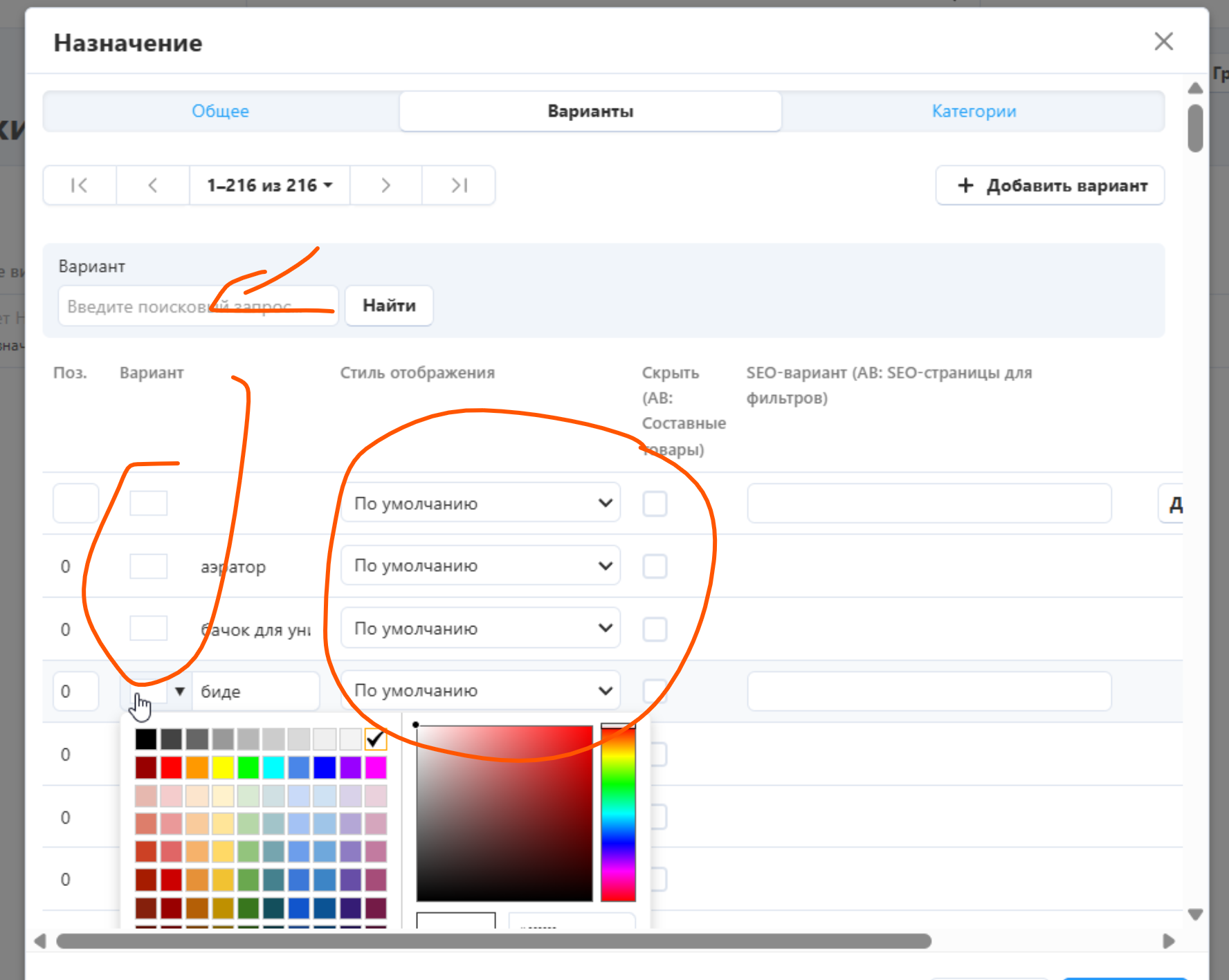 Улучшить вывод вариаций с внешним видом "текстовые метки" в мобильной версии